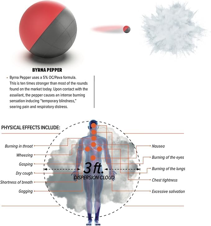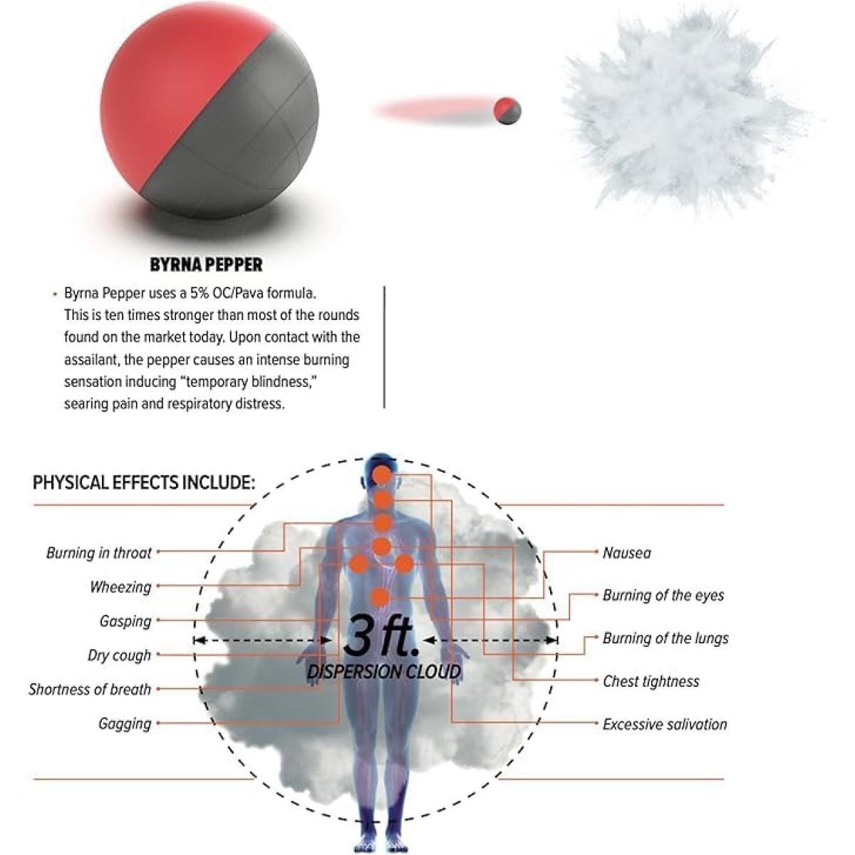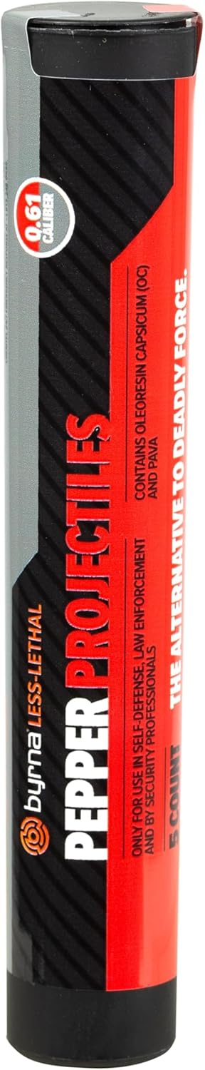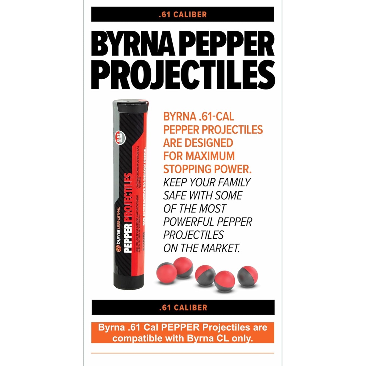 The Byrna .61 Cal Pepper Projectiles contain a powerful blend of OC (Oleoresin Capsicum) and PAVA, making them one of the strongest pepper-based non-lethal projectiles available. Designed for reliable defensive performance, these rounds deliver fast-acting irritation and incapacitation to help neutralize threats quickly.