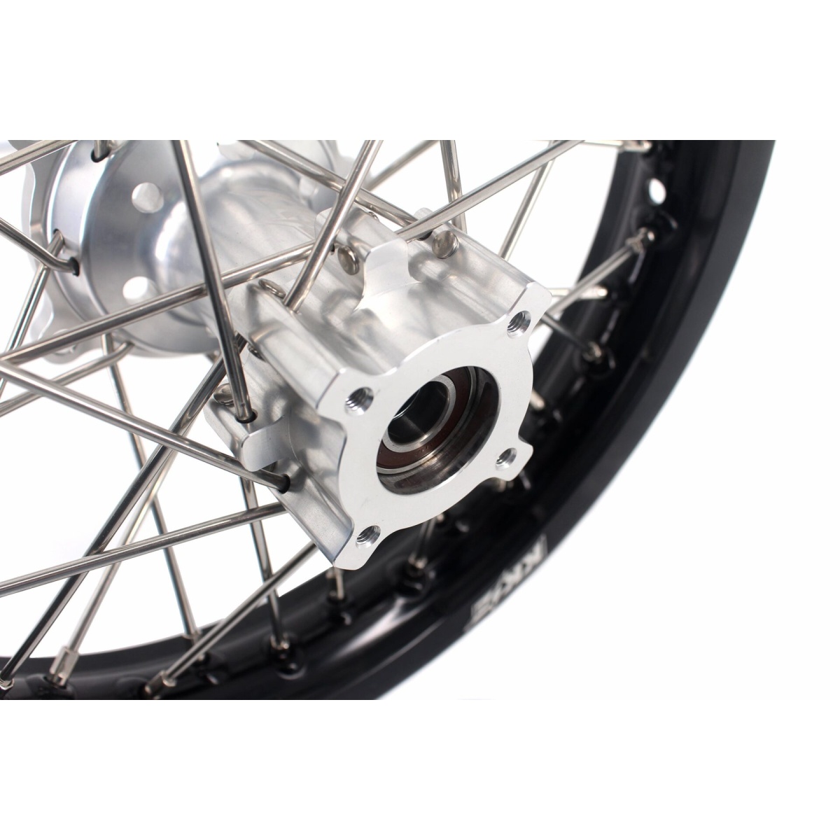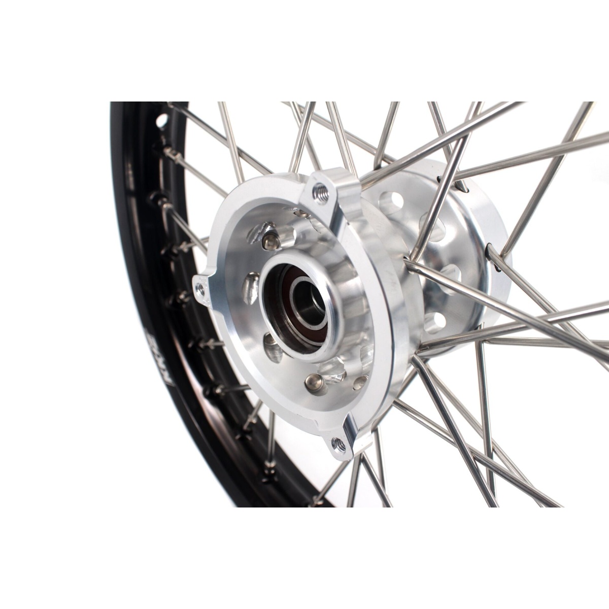 - silver hub, black rim, silver nipple, silver spoke