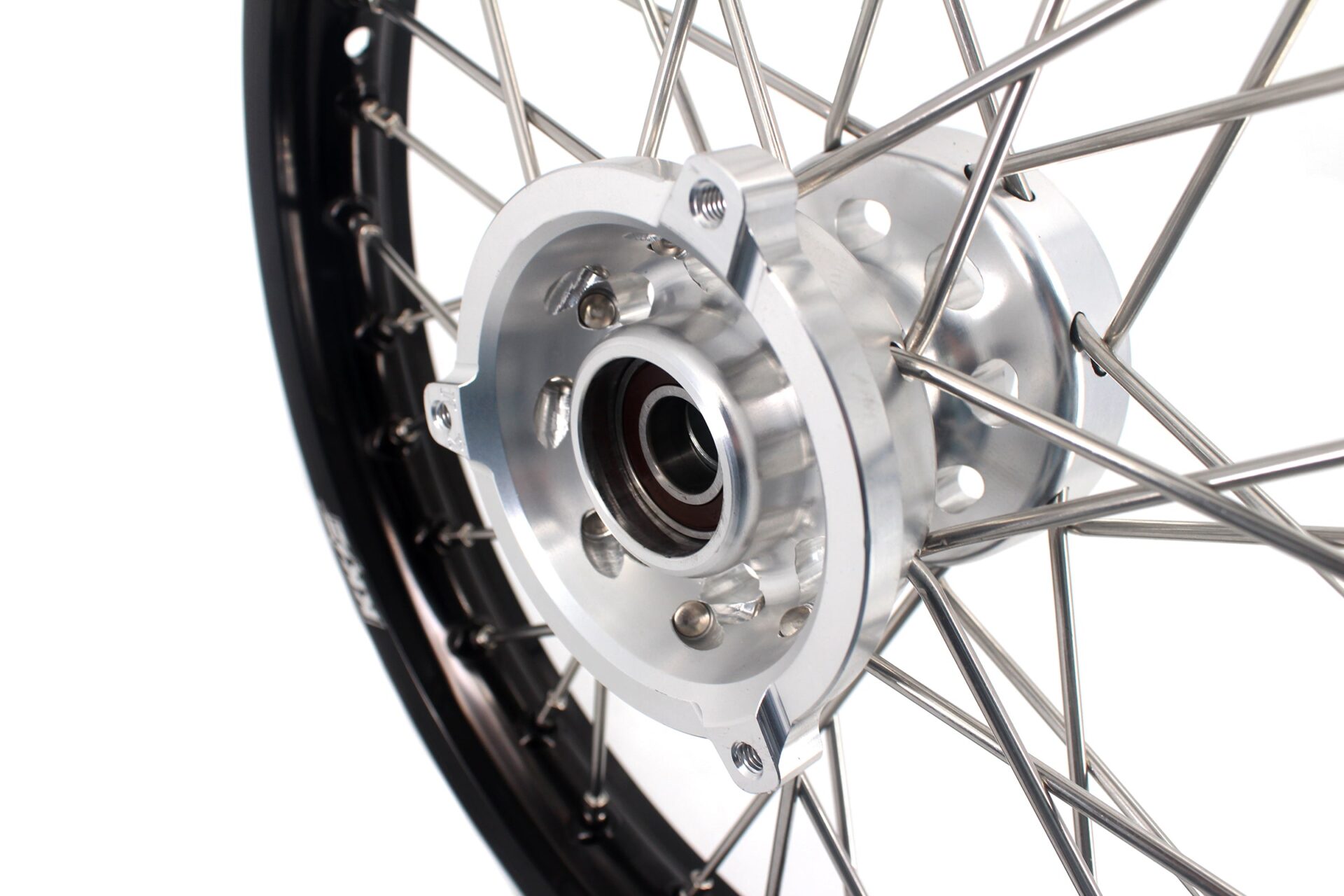 - silver hub, black rim, silver nipple, silver spoke