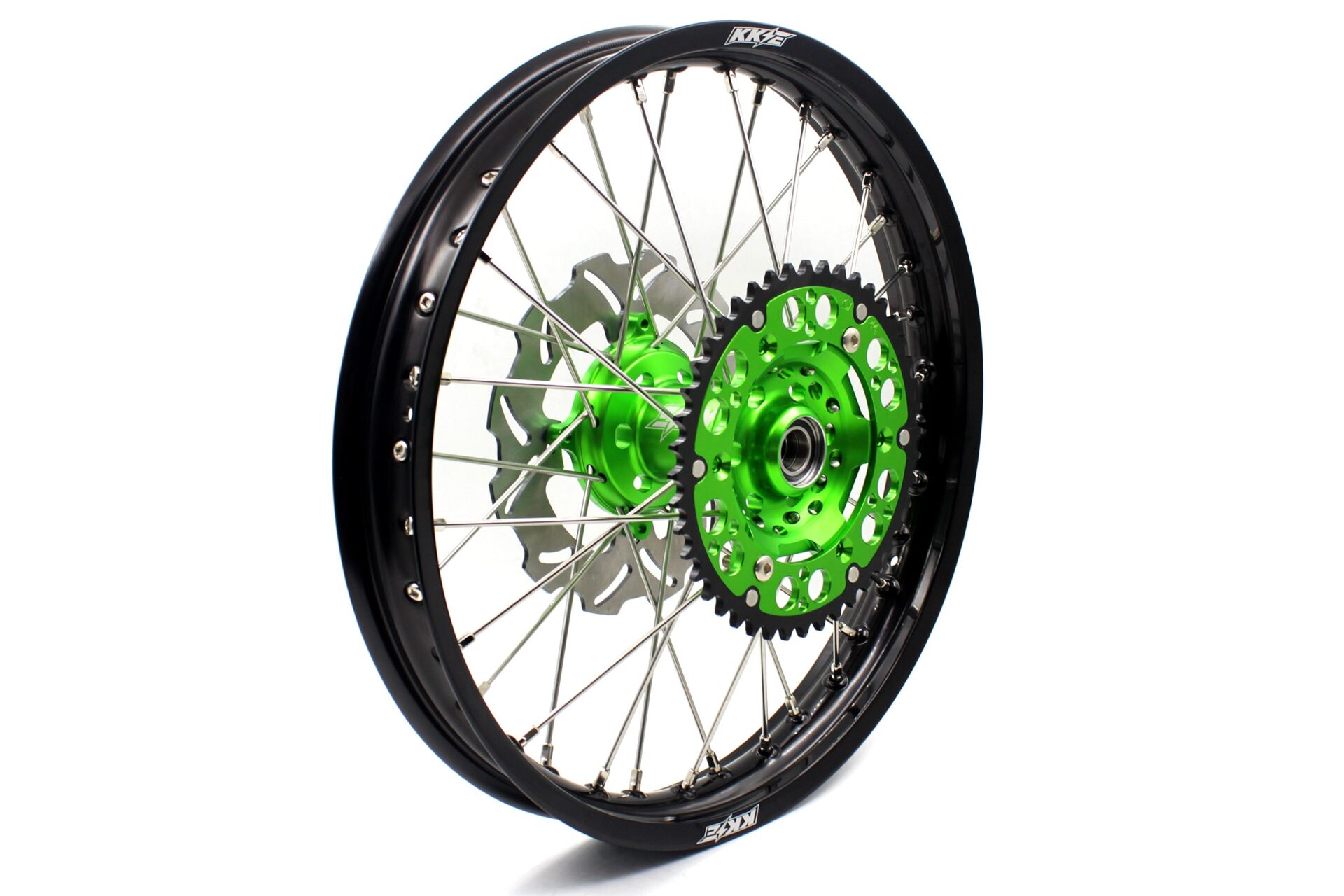 - REAR WHEEL CONVERTED FROM KX250F/450F, IT CANNOT FIT OEM DISC, SPROCKET, BEARINGS, SPACERS AND SEALS.