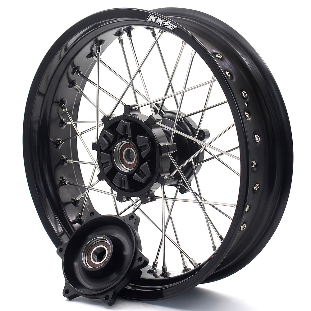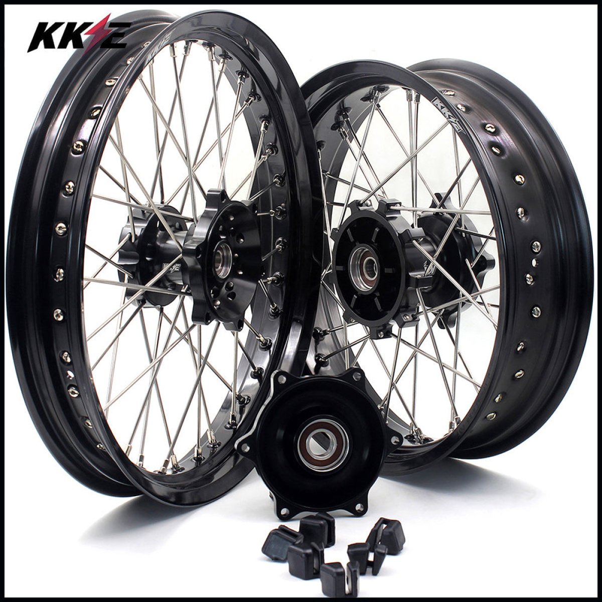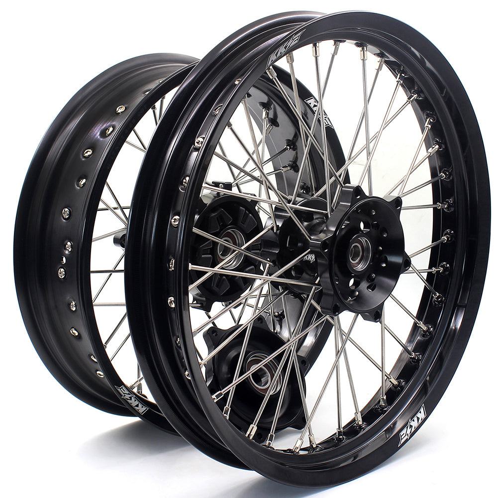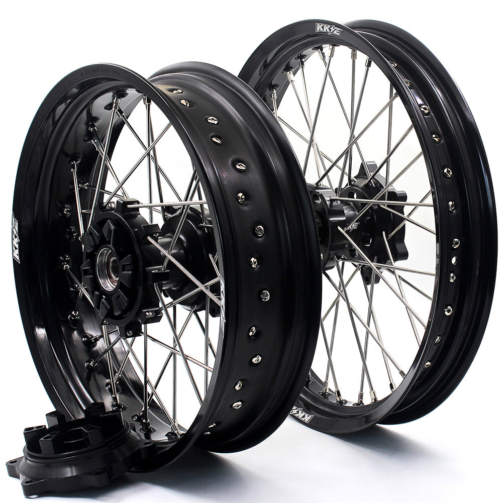 KKE CNC COMPLETE SPOKED SUPERMOTO FRONT REAR WHEELS SET