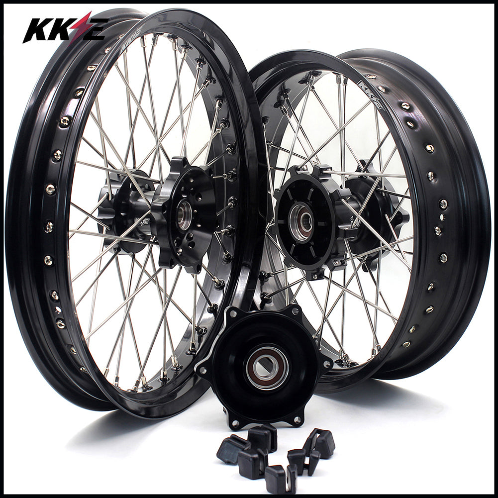 KKE CNC COMPLETE SPOKED SUPERMOTO FRONT REAR WHEELS SET