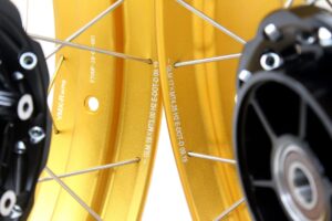 - OUR WHEELS ARE FULLY ADJUSTED AND SPOKES ARE TIGHTEN DURING ASSEMBLY. HOWEVER, WE STILL RECOMMEND BUYER TO DOUBLE CHECK AND TIGHTENING BOTH THE FRONT AND REAR SPOKES BEFORE RIDING. THIS IS TO MAKE WHEELS KEEP A BALANCED LEVEL OF TENSION IN THEIR COMPONENTS.