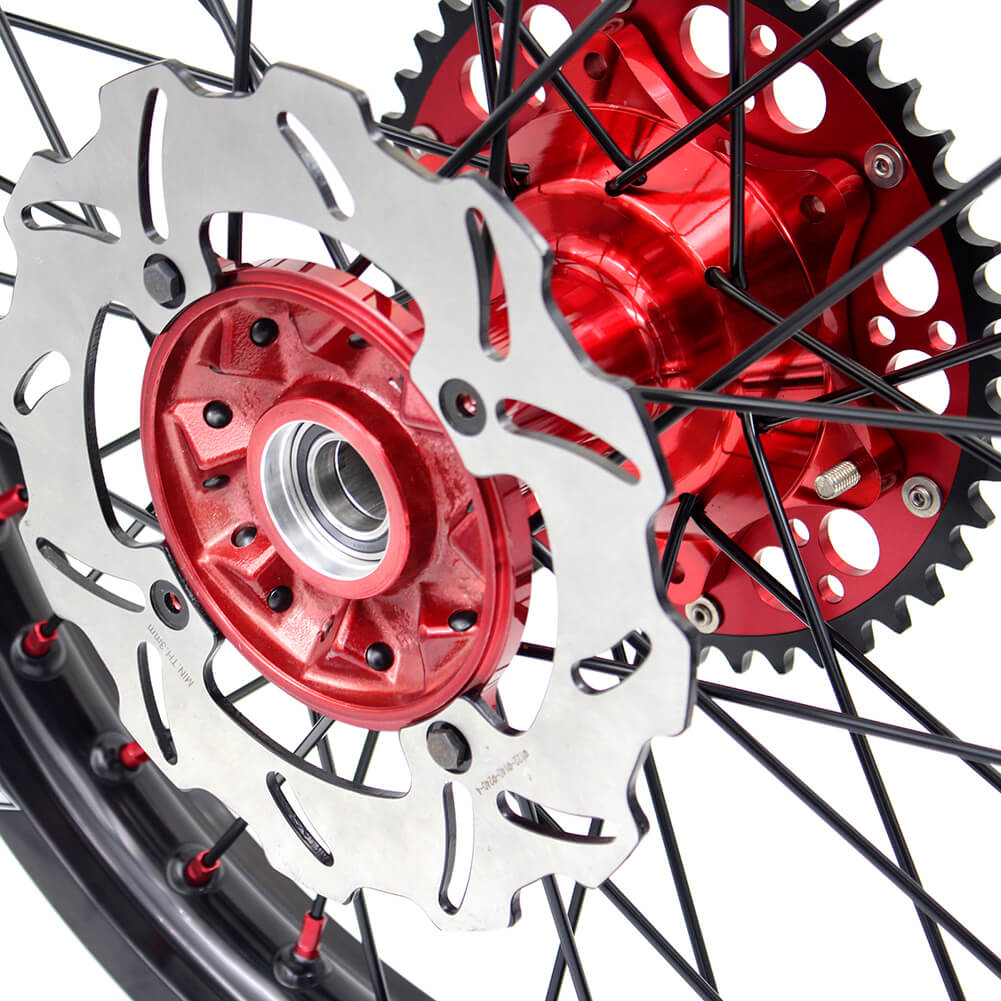 - WHEELS CANNOT FIT OEM DISCS, REAR WHEEL CAN ONLY FIT DISC WITH M6 BOLTS