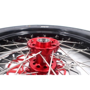 - Red hub, black rim, silver nipple, silver spoke