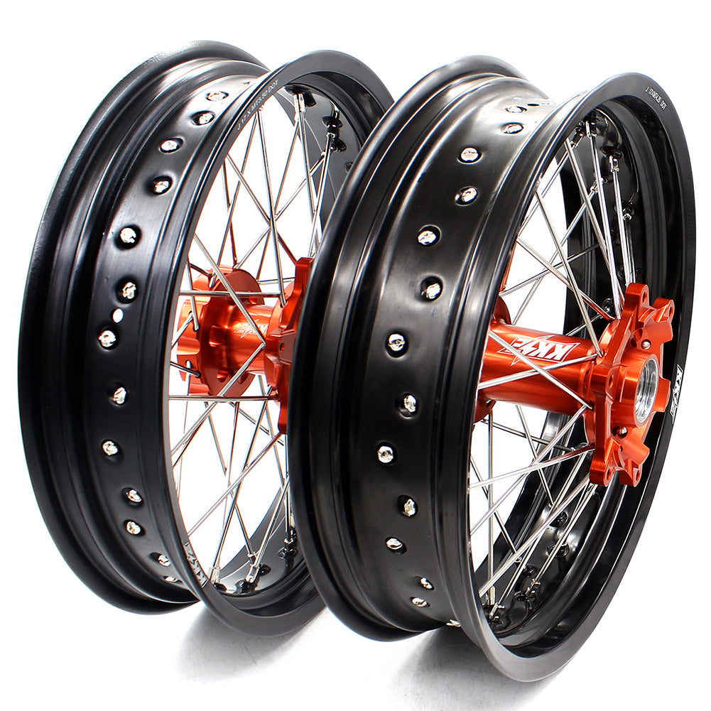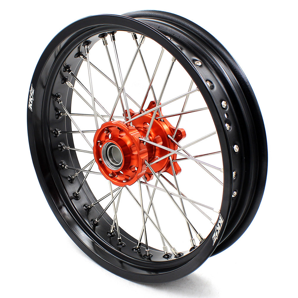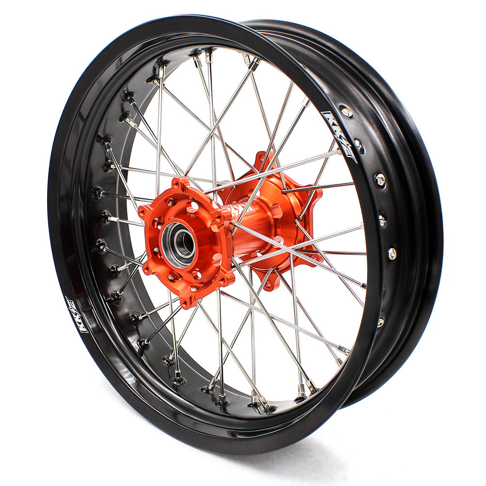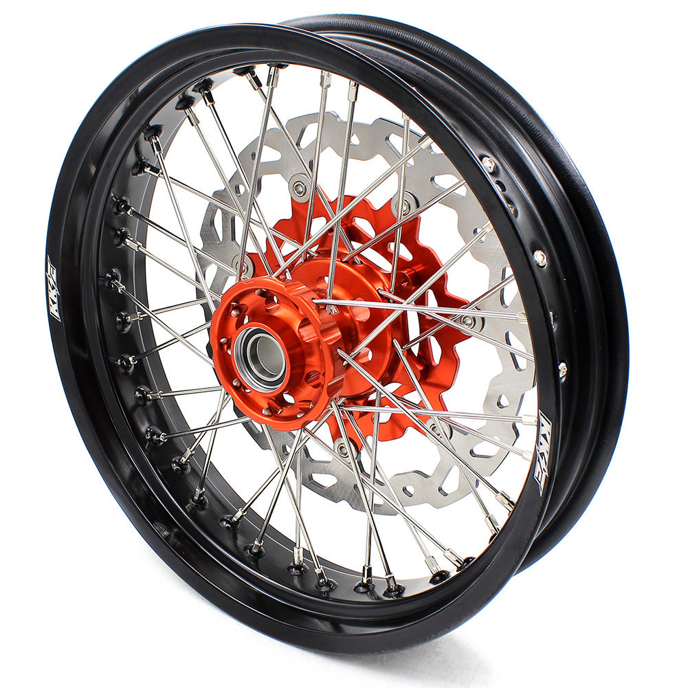 - 3.5*16.5inch is most popular size on supermoto race use. No street tires on 16.5″ size, only race tires possible. Some years ago world championship riders start use 16″ front, and also many natonal top riders go on 16″ , but now many has come back on 16.5″ because 16.5″ size offer better tires nowdays!