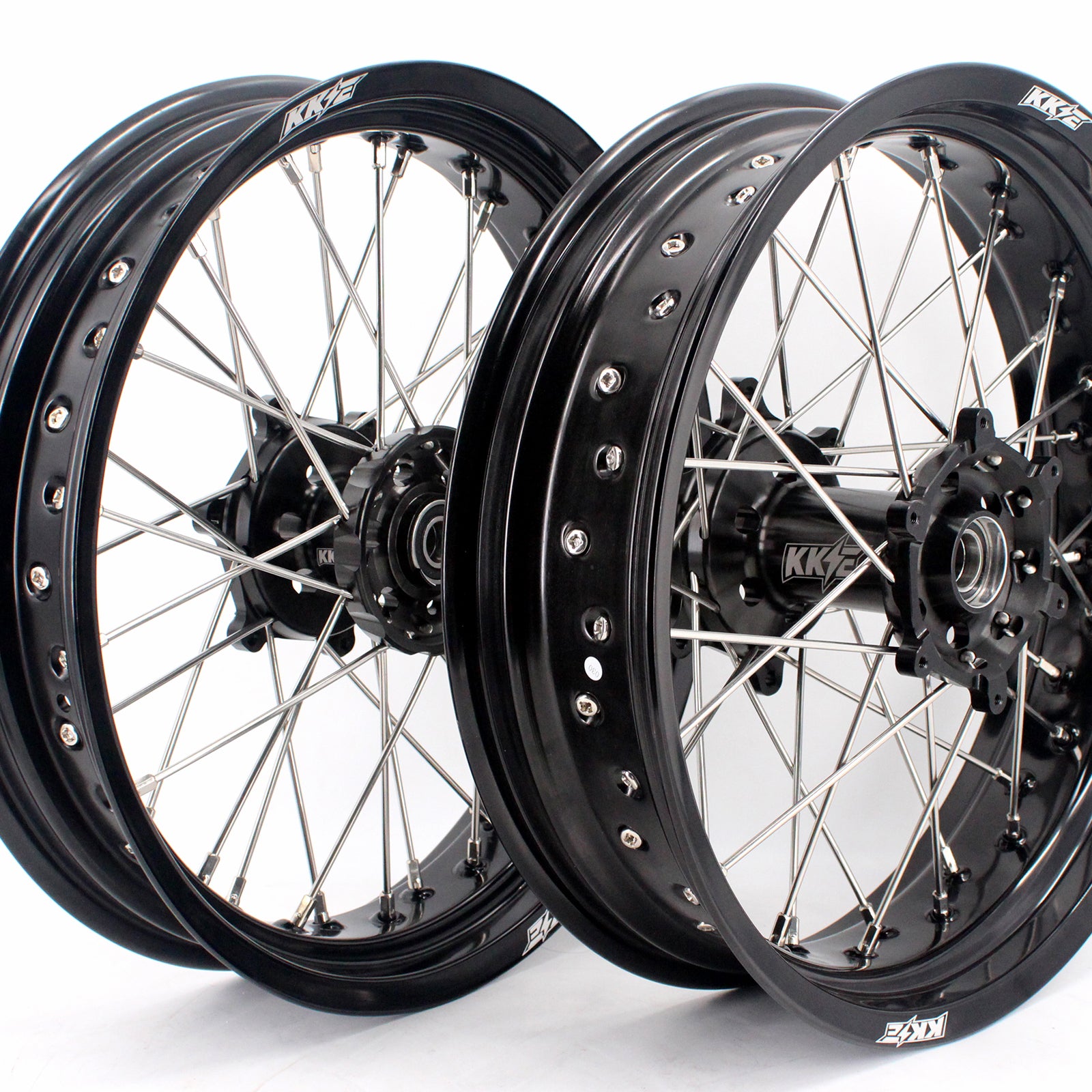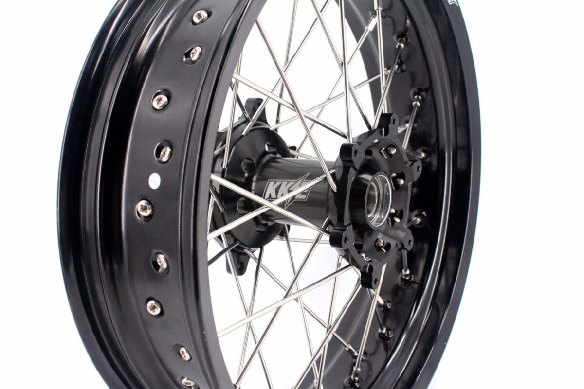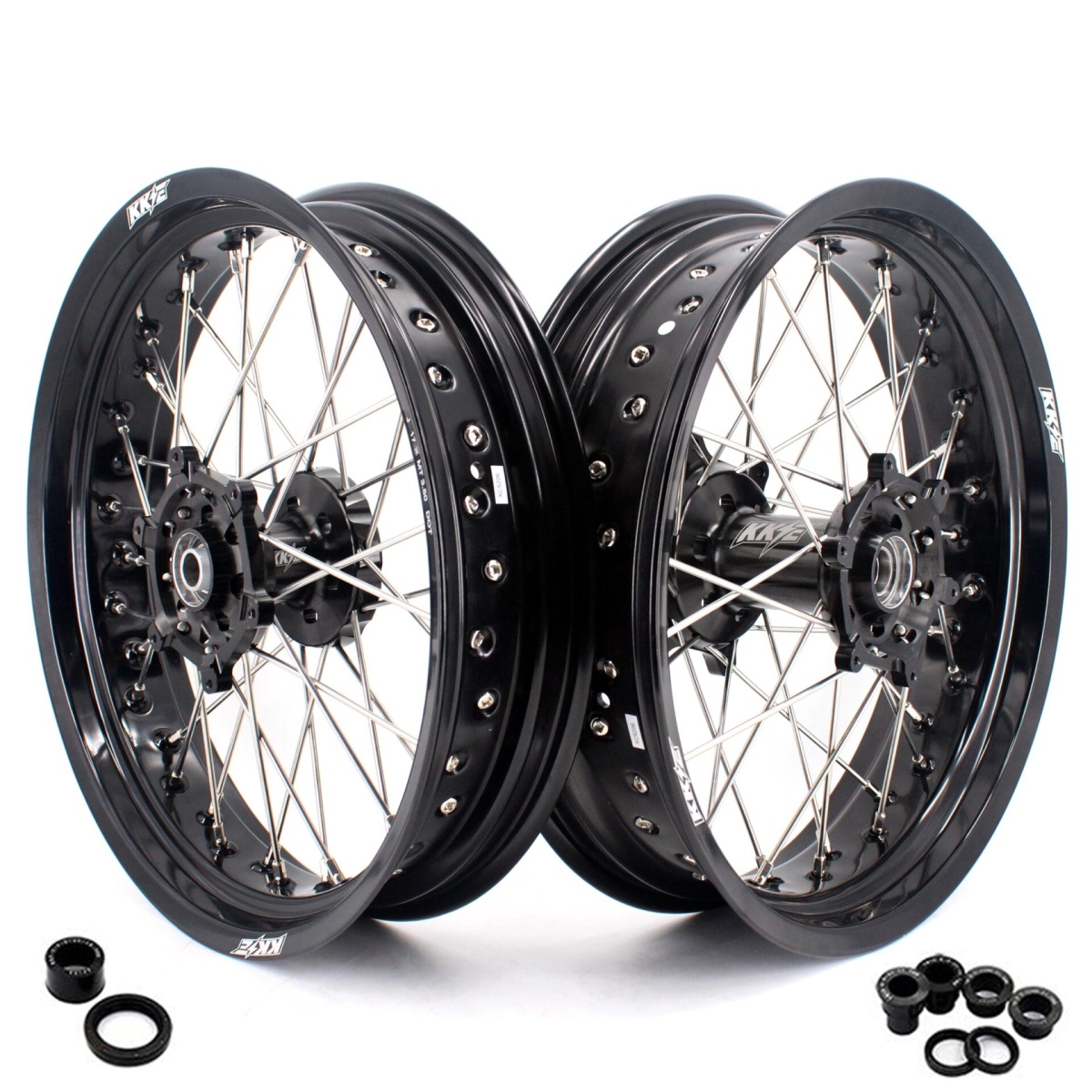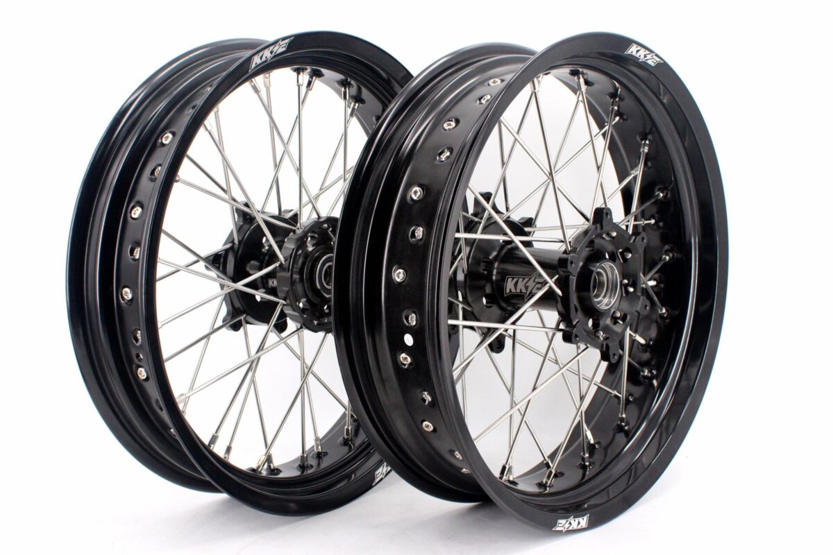 KKE CNC COMPLETE SPOKED SUPERMOTO FRONT REAR WHEELS SET