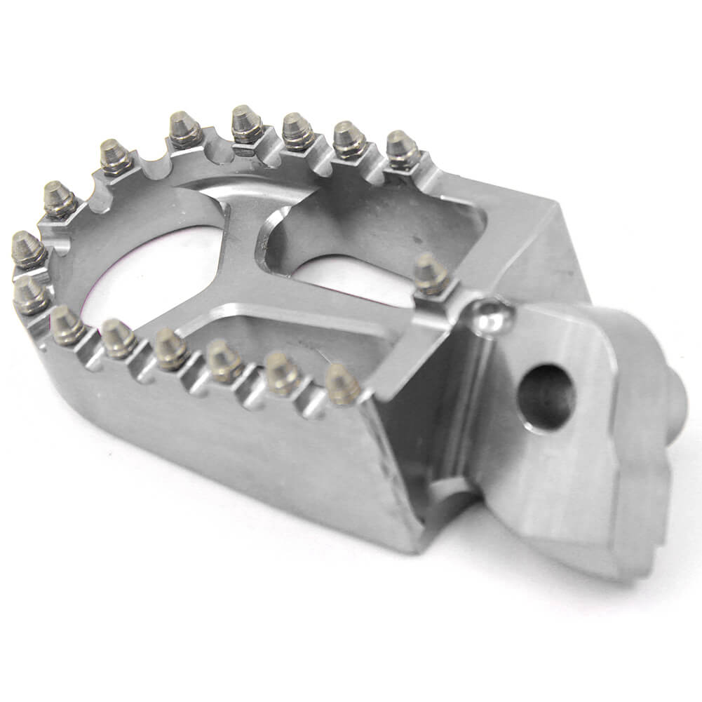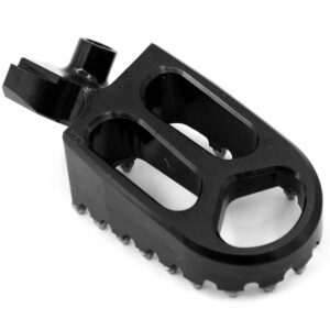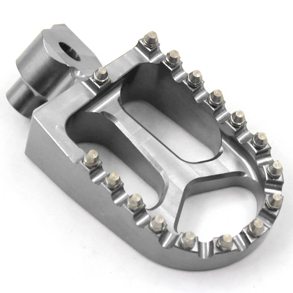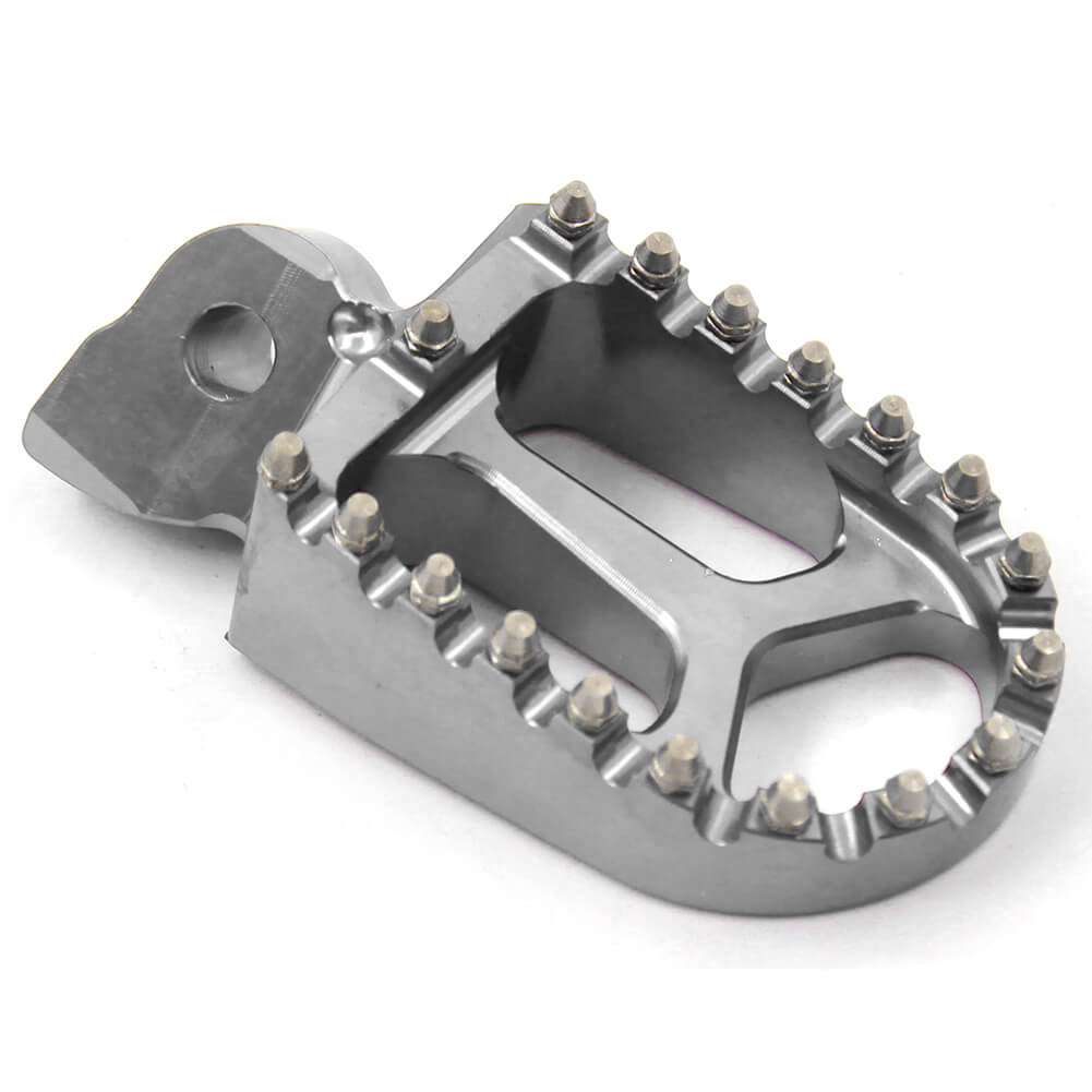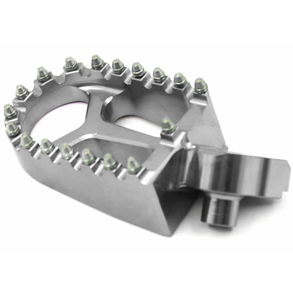 - HIGH PERFORMANCE FOOT PEGS THAT FEATURES A WIDE PLATFORM AND AGGRESSIVE TEETH FOR THE UTMOST COMFORT AND CONTROL.