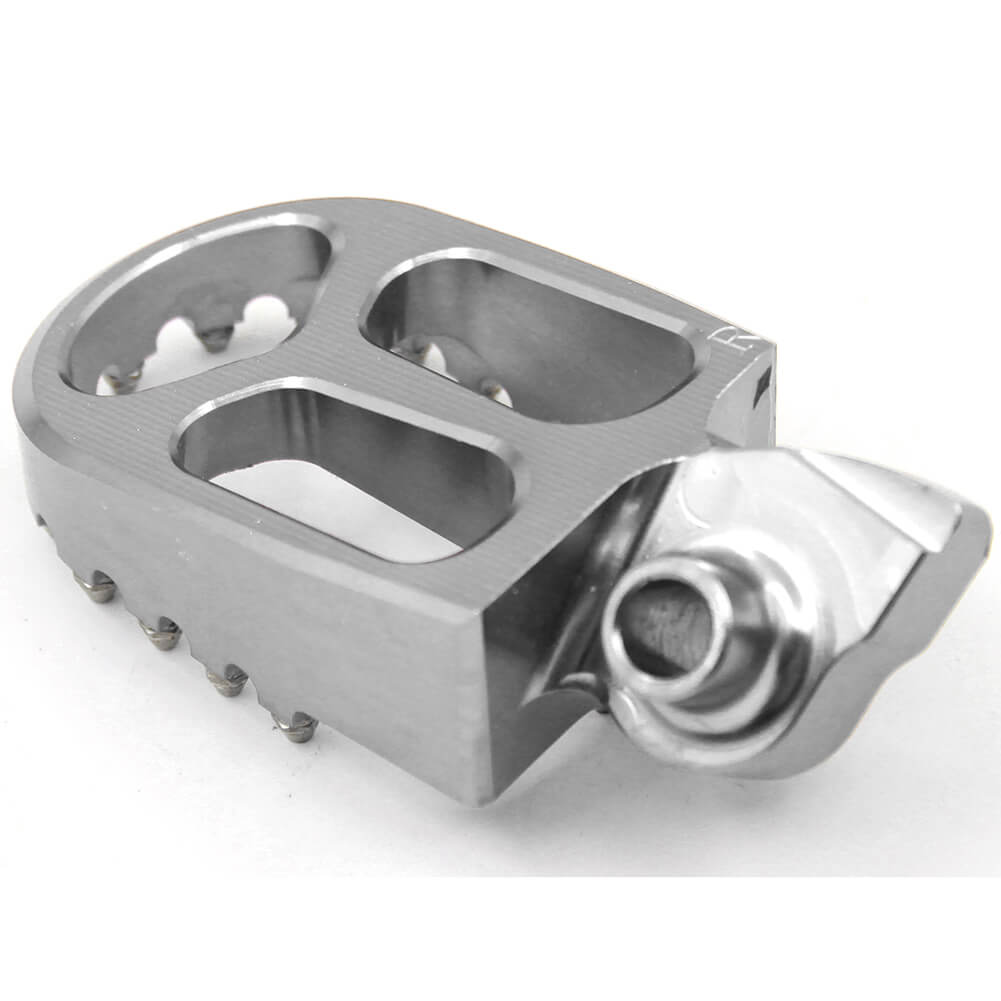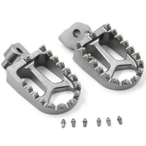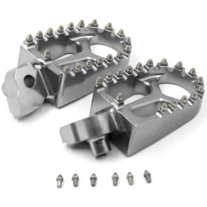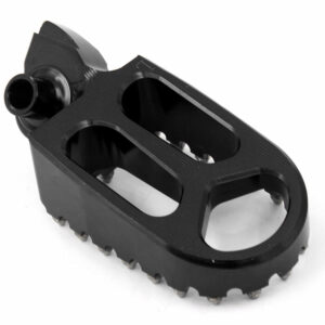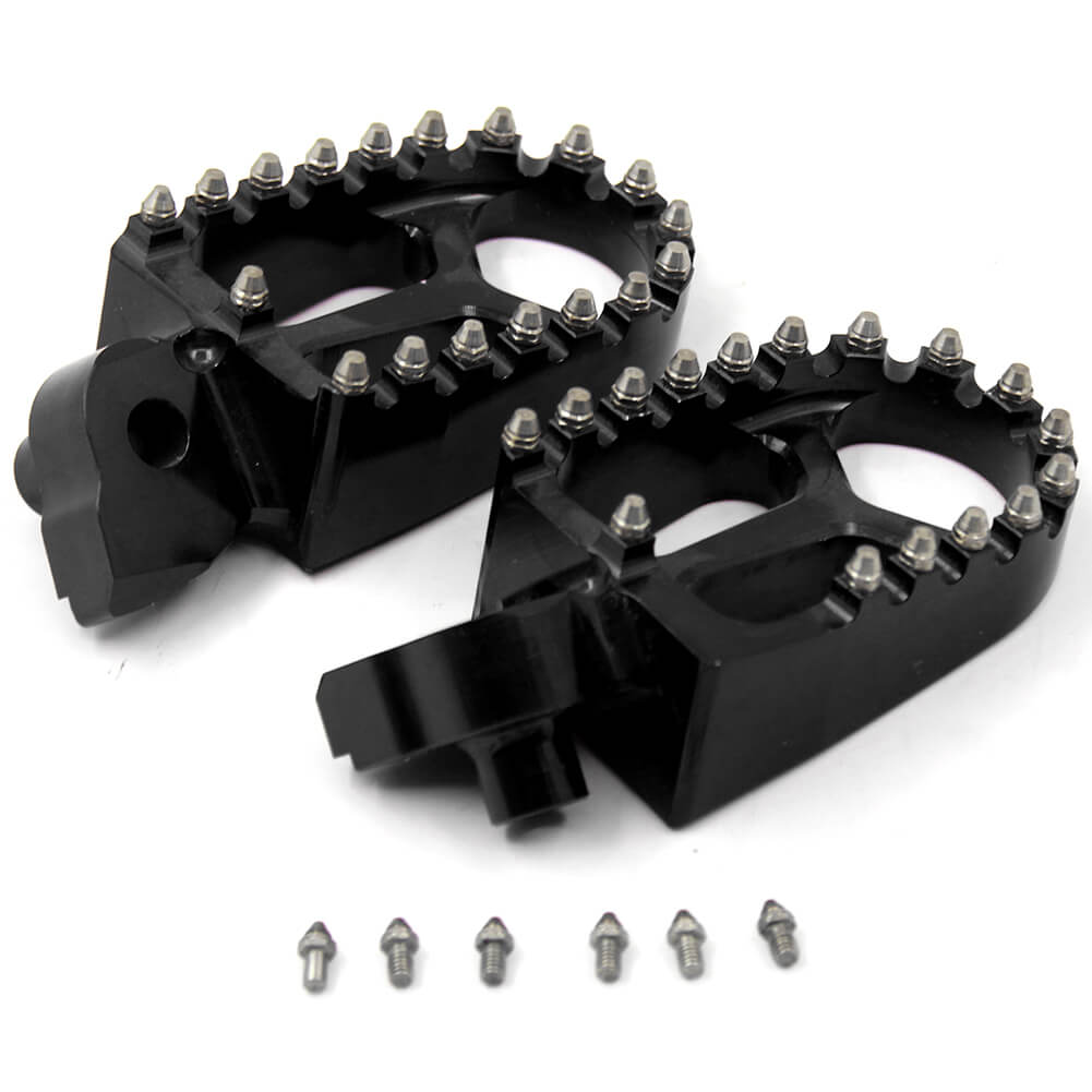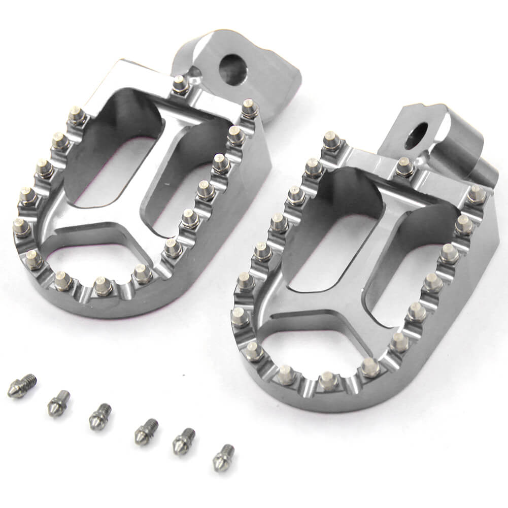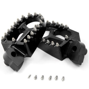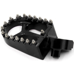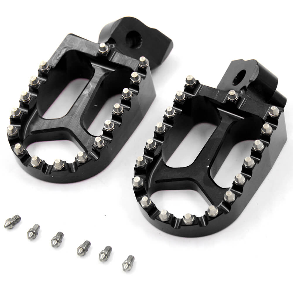 - HIGH PERFORMANCE FOOT PEGS THAT FEATURES A WIDE PLATFORM AND AGGRESSIVE TEETH FOR THE UTMOST COMFORT AND CONTROL.