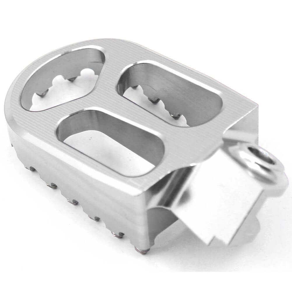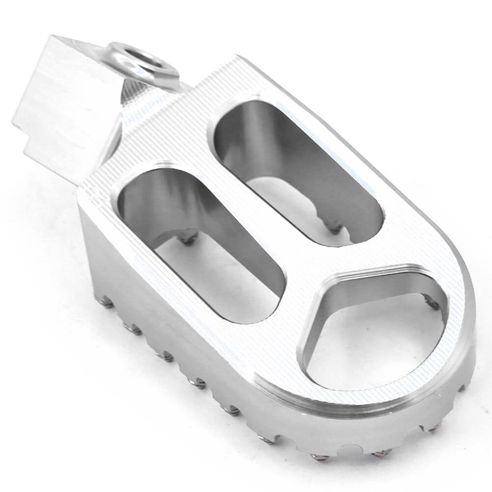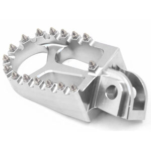 - HIGH PERFORMANCE FOOT PEGS THAT FEATURES A WIDE PLATFORM AND AGGRESSIVE TEETH FOR THE UTMOST COMFORT AND CONTROL.