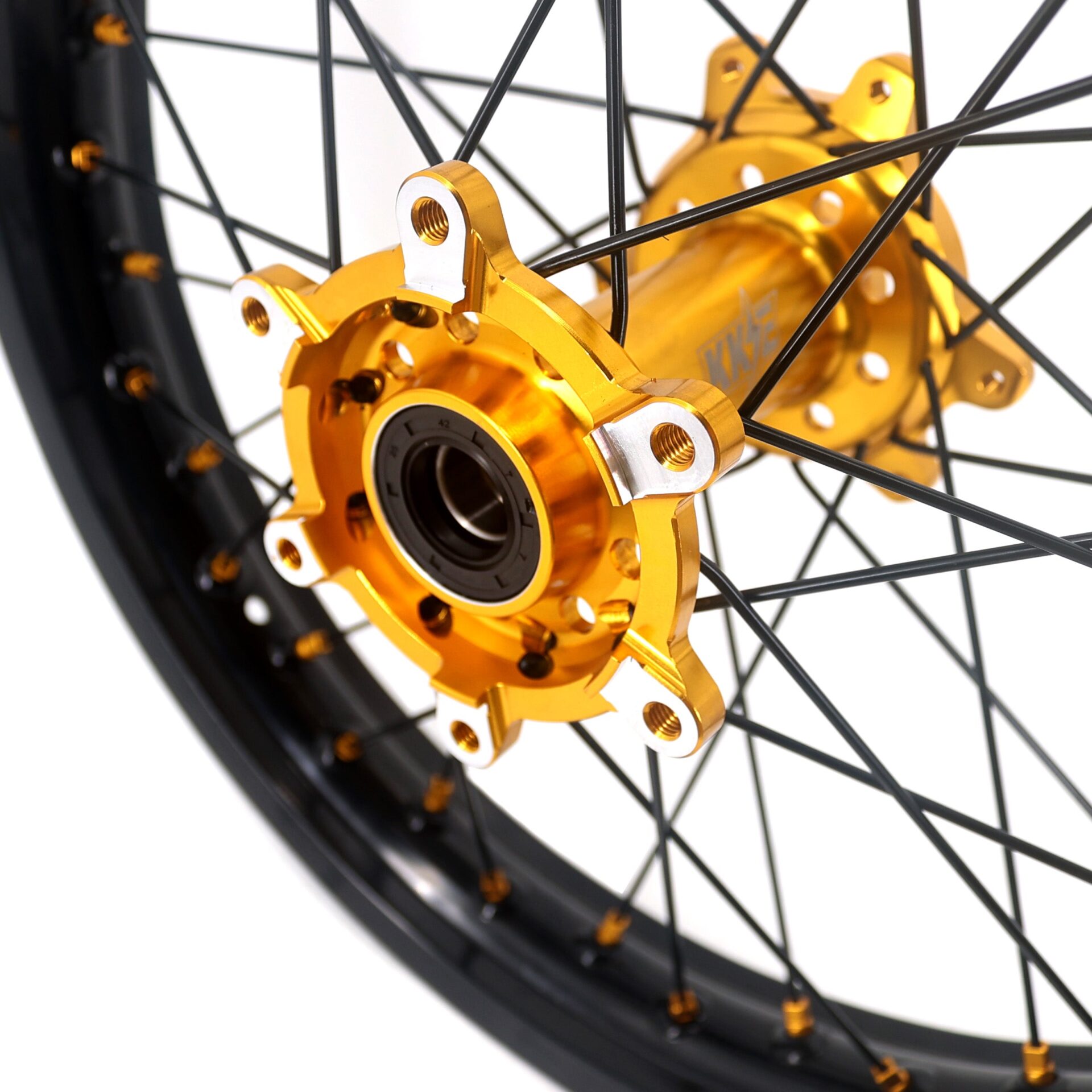 - Gold Hub, Black Rim, Gold Nipple, Black Spoke