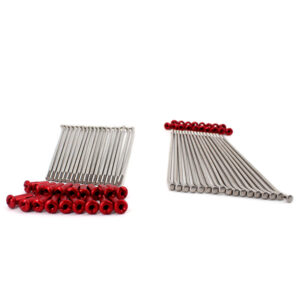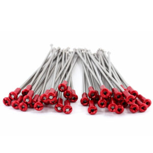 - 304 STAINLESS STEEL SPOKES WITH ALLOY RED NIPPLES.