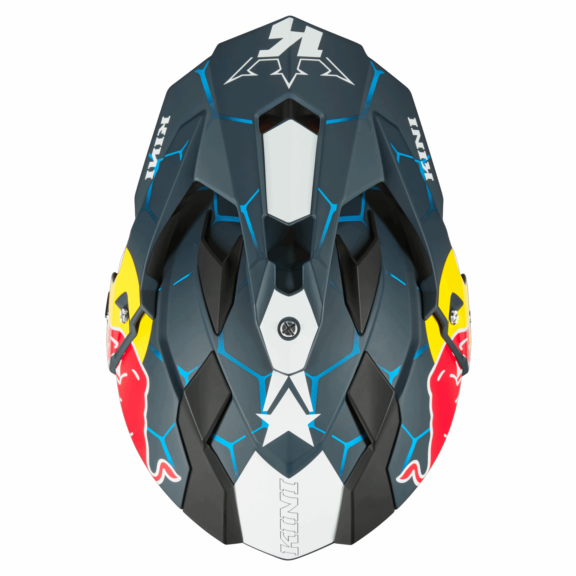 The helmet features a comfortable, performance-focused fit and a striking KINI Red Bull racing graphic that stands out on the trail or city streets.