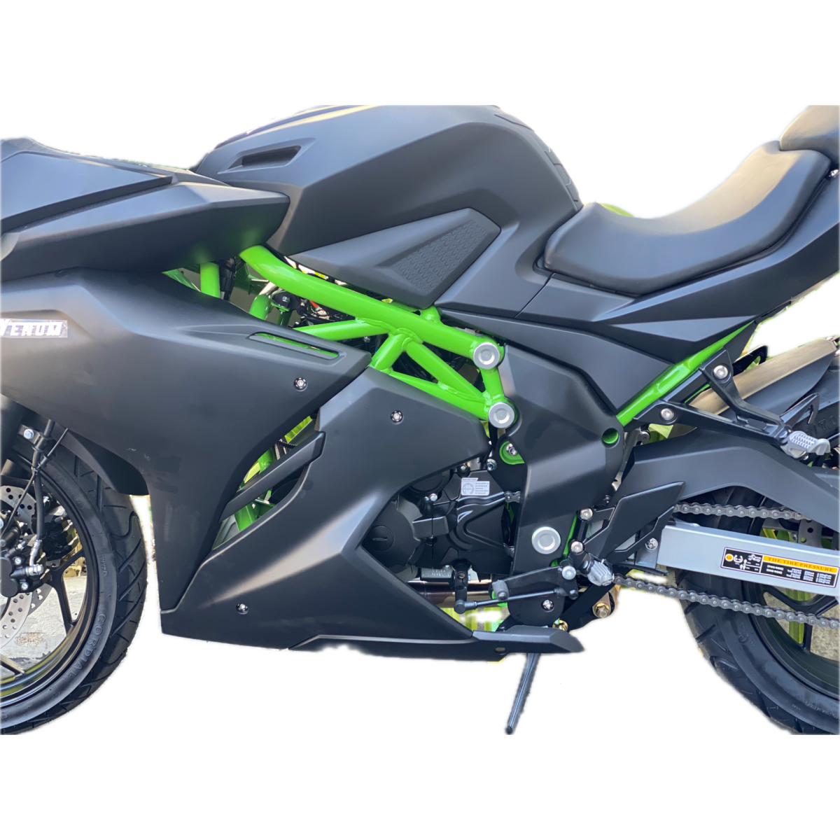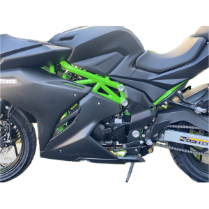 - Ninja styled street motorcycle! High quality sporty design with a stylish lime green finished frame