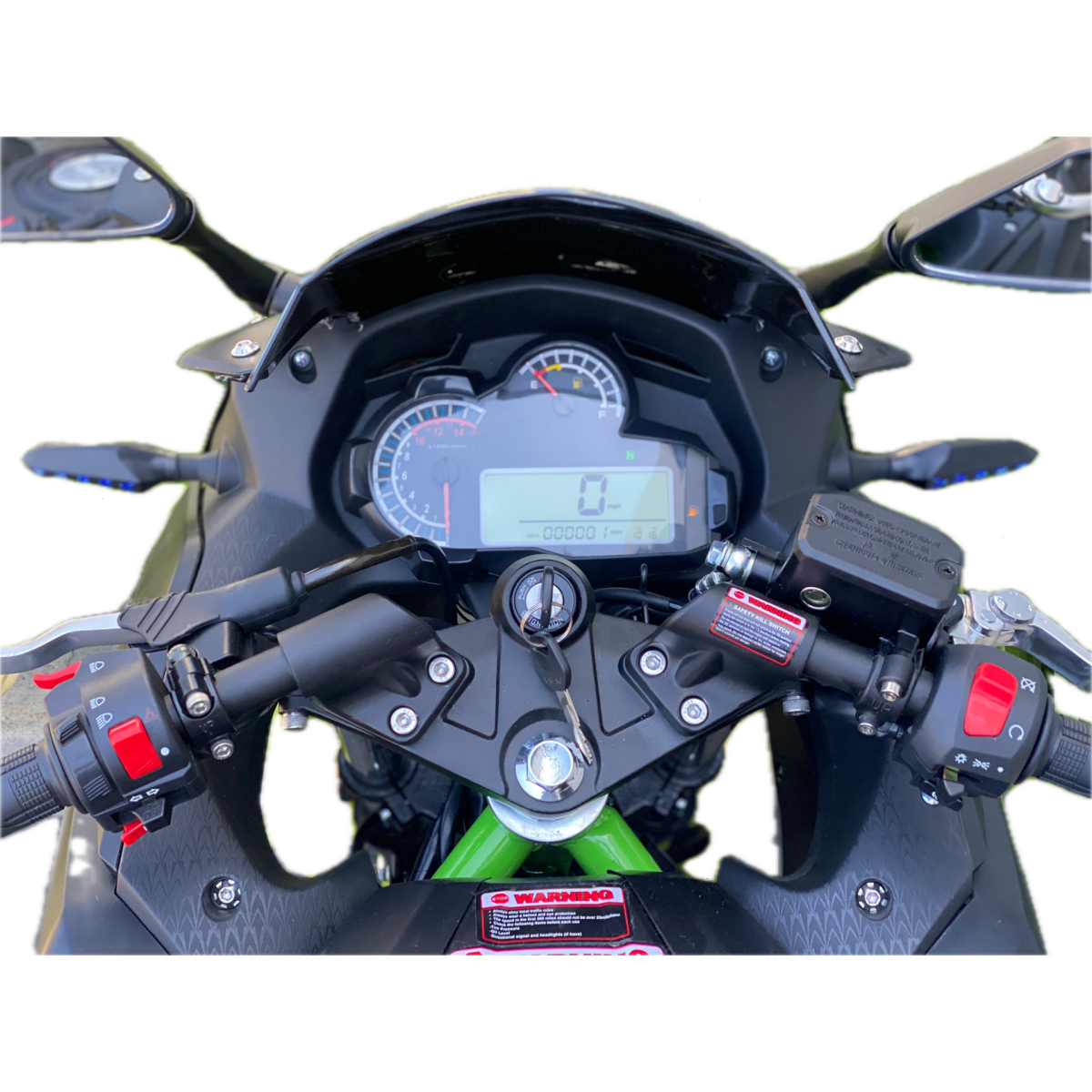 The X22R MAX comes equipped with a factory installed Oil Cooler Kit. It also has LED lights all around such as the headlights, signal lights, rear taillight, and the new BLUE stylish decorative light on the head. Also features an electric push button start, performance 17″ tires that hug the ground, cross drilled rotors with performance calipers, hydraulic disk brakes, 17 inch rims front & rear, a digital MPH speedometer with tachometer RPM display, a locking 4.5 gallon gas tank, and a high performance ECU system that gives the x22R MAX the extra torque and power we all need!